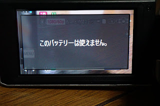 それがある日突然、互換バッテリーを拒否するようになったのです。思い当ることと言えばパソコンを新調し、動画取り込みを行ったことぐらいです。付属アプリ(HD Writer AE 4.0)は新規インストールしたのですがそれが問題?アプリケーションからファームアップすることは出来ないので考えにくいですが隠し機能でしょうか。Panasonicはアプリのバージョンアップさえまともにさせてくれないのに…。ともかく原因不明なのですが電源を入れても「このバッテリーは使用できません」メッセージを表示後、すぐに電源が落ちてしまうので使用できません。電源が入ってメッセージを表示しているのだから「使用できてるだろ!」と文句を言いたくなります。