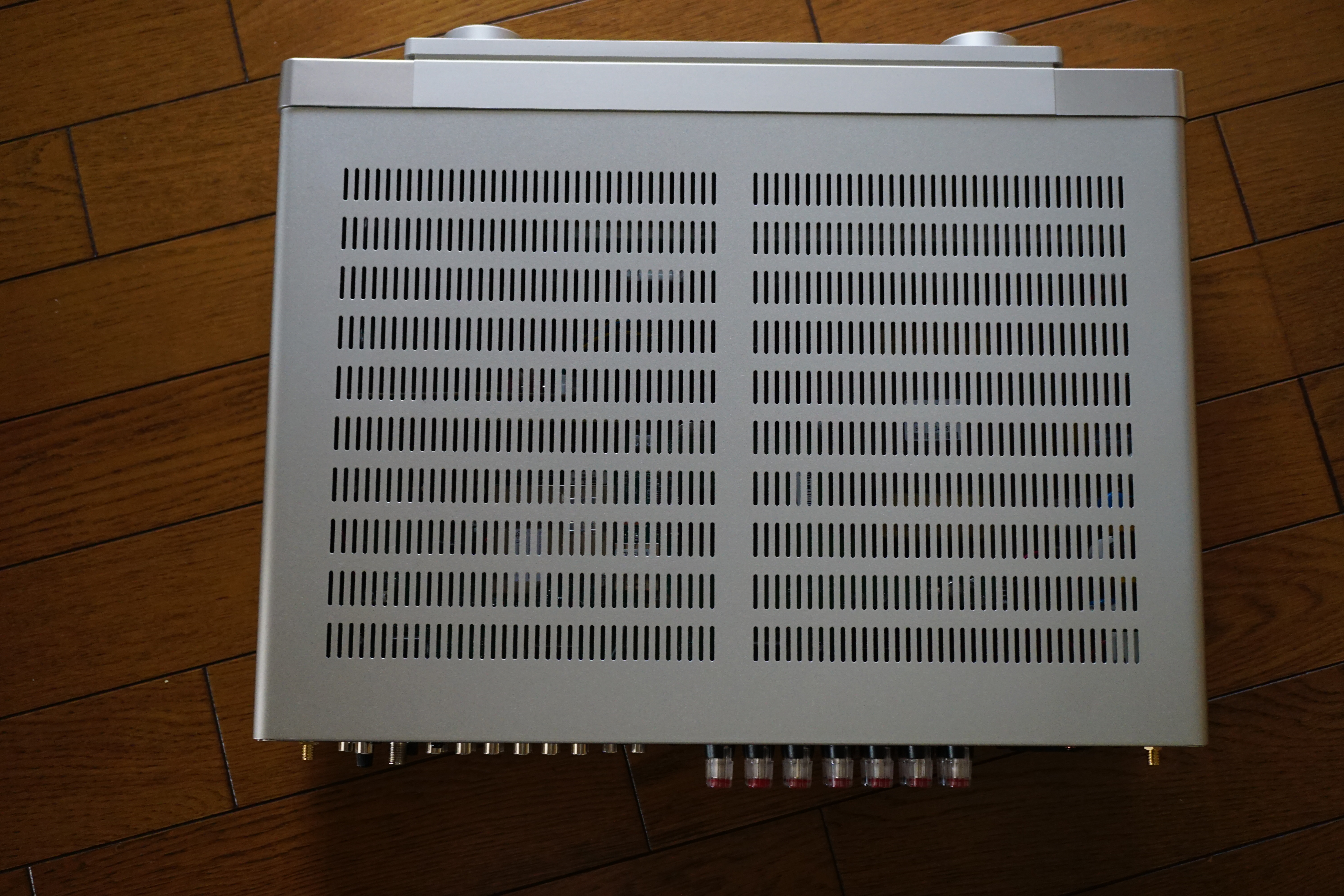 物量がものをいう時代では無いでしょうが、8.7kgは結構重いです。また、高さは10cmほどと一般的なAVアンプよりずっと薄いのですが、設置すると結構なボリュームと存在感を感じます。